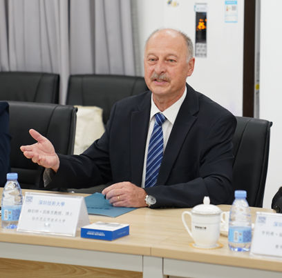 伯尔尼应用技术大学校长赫伯特·宾格里教授首先感谢了我校对代表团的热情款待,他表示,阮双琛校长带领深技大在短短两三年时间内高质量地完成了从筹建到正式成立的开创性工作,正是“德国质量”和“深圳速度”的完美体现,他对此印象极为深刻。与此同时,校长赫伯特·宾格里教授十分认可深技大对标德国、瑞士应用技术大学的国际化办学理念和人才培养模式,所举办的一系列特色国际化活动,比如国际课程、高水平国际论坛、巴伐利亚文化夜等让人眼前一亮,期待今后能与深技大开展更深入的国际合作和交流。此外,他还指出,深技大未来五到十年无论从学生人数亦或是校园基础设施等方面的规模和发展前途都令人深感震撼,他对于两校未来进一步拓展国际合作的美好前景充满热切期待和信心,希望能携手深技大、西北应用科学与艺术大学等瑞士知名应用技术大学,加大整合中瑞高校优质资源,细化落实创新合作项目,打造中瑞创新智力平台!