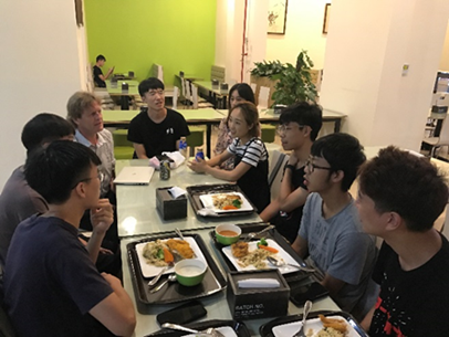 另外,代表团来访期间还与我校学生积极交流,体验校园文化。伯尔尼应用技术大学国际关系部部长彼得·艾根曼教授与2019年伯尔尼应用技术大学夏令营参团的新材料与新能源学院学生就2019年暑期夏令营项目进行亲切交流。
