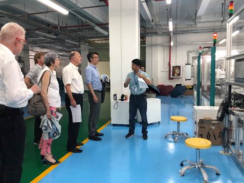 下午,伯尔尼应用技术大学代表团一行5人还参观了新材料与新能源学院的材料测试实验室、先进材料实验室、晶体生长与测试技术重点实验室,城市交通与物流学院的汽车工程实验实训教学中心、深圳市城市轨道交通重点实验室-半物理仿真实验室,中德智能制造学院的啤酒酿造过程控制实验室、“工业4.0”智慧工厂、中德口腔数字化设计与智能制造实验室、光纤传感实验室、中德光学设计与检测联合实验室、虚拟仪器技术联合实验室。