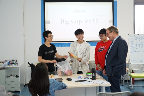 来自中德智能制造、大数据与物联网、生物工程与健康学院共15名未来“企业家”组建了4家公司,他们要各自创办专门生产经营冲浪板的初创企业,并通过TOPSIM企业经营管理模拟系统,参与整个创业模拟的过程。一开始,各企业要将他们的商业计划、目标市场和数据等信息输入TOPSIM模拟系统中,Eberhard教授随即根据各企业计划来决定是否授予贷款或寻找愿意投资的投资人。随后,4家企业进入“市场”, 互相竞争,每家企业将依据市场情况负责制定重要的管理决策,TOPSIM系统会计算运行各企业的决策,模拟市场竞争。每一轮决策后,TOPSIM系统会显示企业采取的措施是否有成效,并生成企业运营报告。6个创业周期结束后,盈利最好的公司取得胜利。