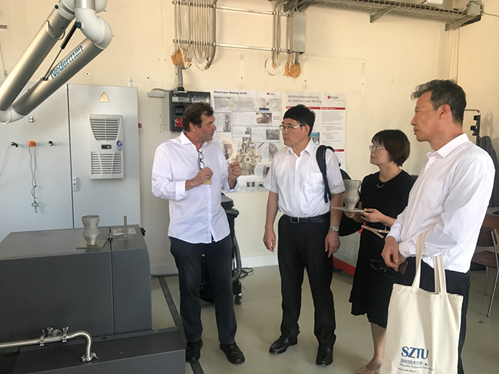 18日下午,代表团拜访了慕尼黑应用技术大学副校长Klaus Kreulich、MUAS-SZTU夏令营指导委员会Martin Renner、汉斯·赛德尔基金会邵贝德博士。在刚刚过去的7月,我校26名学生参加了两校举办的“工业4.0”暑期学习和交流项目,双方均表示夏令营活动对学生开拓国际视野、了解国外应用技术大学具有重要意义,双方约定,未来将继续在师生交换、联合课程开发等方面深入开展合作。