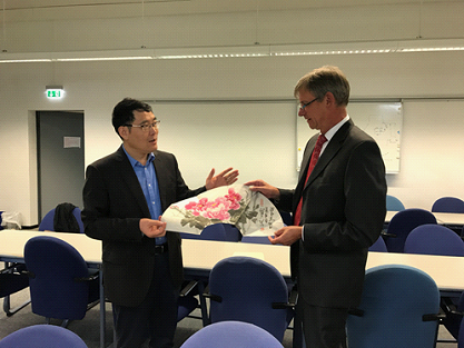 (阮双琛主任与该校副校长Michael Wulf交换礼物)