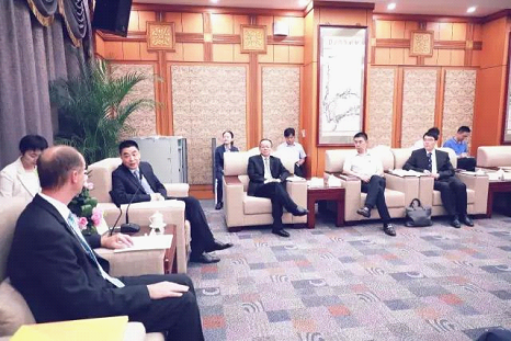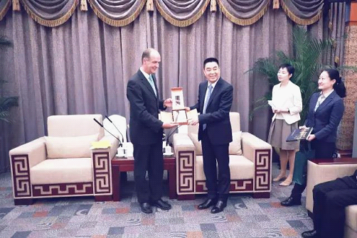 阮双琛主任(右)向高自民副市长(左)汇报我校国际合作情况