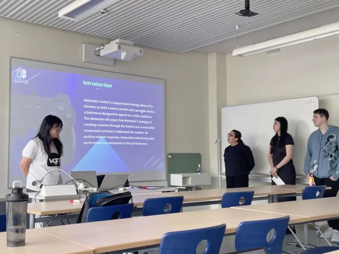 与来自世界各地的学生合作,也是深技大学子此次交流经历中的一大亮点。各组同学互为“商业伙伴”,为达成共同的“商业目标”而不断努力。课余时间,与国际伙伴积极进行小组讨论,共同完成课后作业、进行课前准备和成果展示,使深技大学子得以在沉浸式外语环境中,积极探索国际商务中的跨文化差异,强化团队精神和英语技能,锻炼跨文化领导和交流能力。