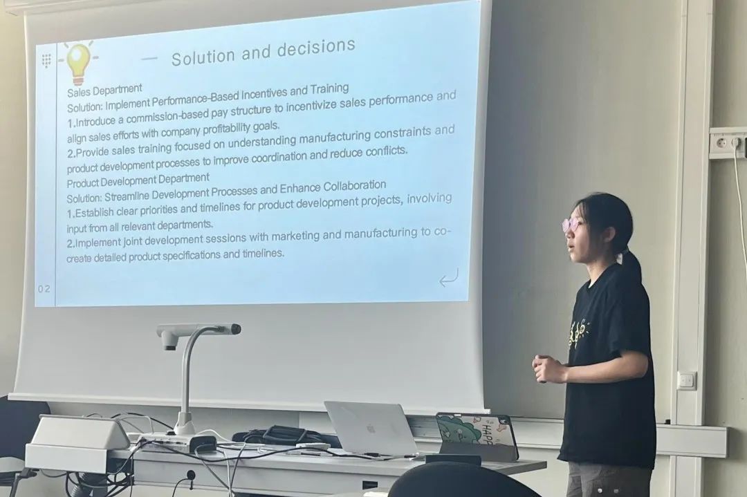 此次项目主要开设《商务管理模拟》和《案例研究》两门德国学分课程,由该校教授全天授课,每节课通过企业角色扮演、小组研讨、模拟会议、汇报演示等多种互动形式,将商务管理知识和能力的培养融入实践中,引导同学们学以致用。