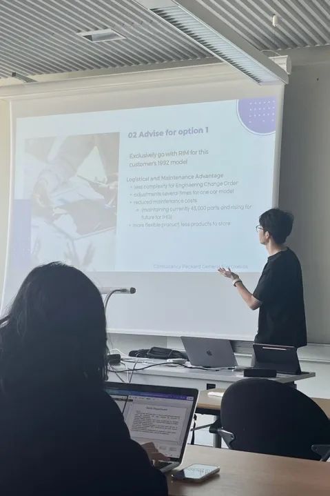 课前,同学们需要对各种国际企业的案例进行阅读和分析归类,提炼案例核心内容,并运用与之匹配的模型进行案例分析。每节课上,针对不同企业案例,同学们分成董事会和咨询顾问两个组,分别扮演咨询顾问、CEO、董事会成员等角色,进行内部研讨和公开汇报。