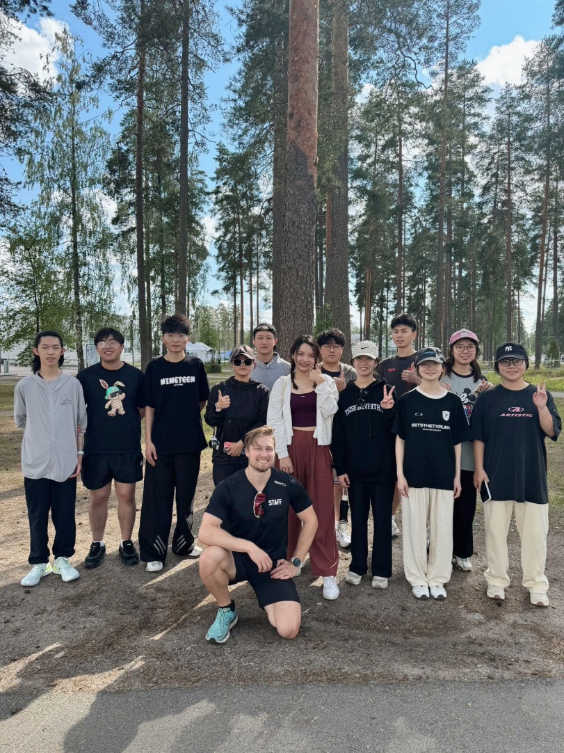 同学们不仅能够领略到芬兰前沿的教育实践,还能够深入参与芬兰的传统体育活动和自然体验,充分感受芬兰人对生活的热情与平衡。在哈格哈里亚应用科学大学的Vierumäki校区,同学们体验了多样的活动,包括瑜伽课、森林徒步、蓝莓采摘、旱地冰球和匹克球课程。他们在瑜伽课上通过舒缓的动作和呼吸练习,放松了身心,增强了内在的平静与专注。随后,在宁静的森林中徒步旅行,他们亲身感受了芬兰自然的美丽与宁静。