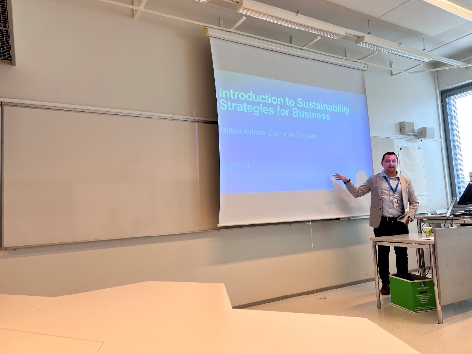 在胡马克应用科学大学的课堂上,学生们体验了一次充满师生互动的芬兰式教学氛围。国际办公室主任Kim Lindblad巧妙地利用简单有趣的图片,引导学生们将图片内容与自己的生活经历联系起来,以轻松愉快的自我分享作为课堂的热身活动。