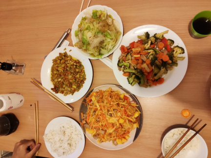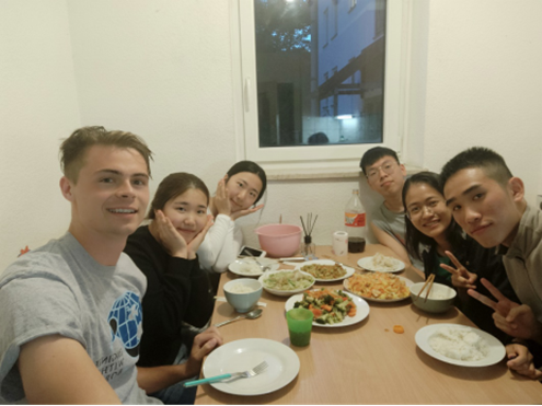交换项目不仅给三位同学带来了全新的学习体验,也是一段新生活的开始。德国宿舍五人共住一间套房,每人一间房间,厨卫共用,房间内设施一应俱全,让三位同学感觉生活环境十分舒适。在德国,周日几乎所有商店都休息,偶有一两家开门的餐馆也颇贵,三位同学开始了“自力更生”的生活,纷纷化身大厨,厨艺在短短一月内突飞猛进,逐渐从最初的西红柿炒鸡蛋,演变成丰盛的菜肴。