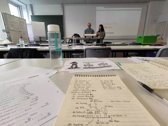 文银晨同学觉得在德国上德语课感觉与国内有所不同,老师讲的内容实用且有趣,在暑假用心补习德语课的她兴奋地表示自己都能听懂课程内容。“德语课应该是最欢乐的课堂了,虽然偶尔还是会脱节,很多时候,都是听到后面才反应过来,‘喔~原来教授刚刚讲的是这个啊!’”。张瑞同学经过一周学习后则更加下定决心要好好学习语言,他给自己语言能力的评价是:“日常生活够用,但是一涉及到专业知识沟通就完全不行了,在项目合作中需要反复确认对方的意思和自己的意思传达无误。”