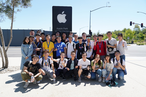 大家满怀期待走进Apple Park——苹果公司的新总部大楼,人们因其环状的外观又称之为“苹果飞船”。Apple Park是乔布斯最后的杰作,是乔布斯留给这个世界“只有足够疯狂才能改变世界”的证明。通过实地参观与讲解员的讲解,同学们感受到Apple的创新与“极简”理念。