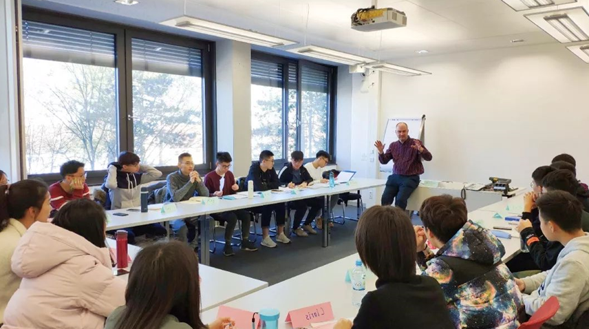 3月18日,为期两周的交流课程正式开始。第一节是Mr. Michael Reith老师的英语课,不同于平时基础的教学, Michael老师从练习口语出发,通过“模拟面试”、“词汇竞猜”、“情景讨论”等模式,充分让小组间进行讨论,从而提升英文实用能力。
