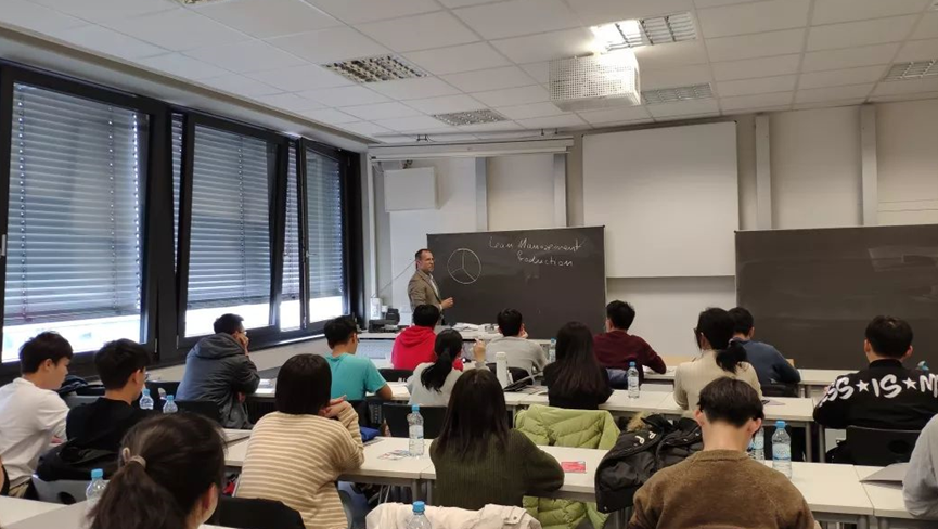 精益管理(Lean Production Management)则由来自东巴伐利亚应用技术大学(雷根斯堡)的Prof. Liebetruth教授授课,核心在于启发学生的“精益思维”,即在未来面临产品生产、企业管理中,通过各个环节的状况分析,将损耗降至最低,将价值收益最大化。课堂上,更是深入浅出,通过“纸飞机制作”案例,让学生们扮演客户、生产商、运输商等角色,其中有严格的“产品检测员”、不断奔波的“运输员”……几轮订单后,Prof. Liebetruth带领同学们具体分析了环节中的问题,再上升到知识层面解决了各类损耗,使同学们获益良多。