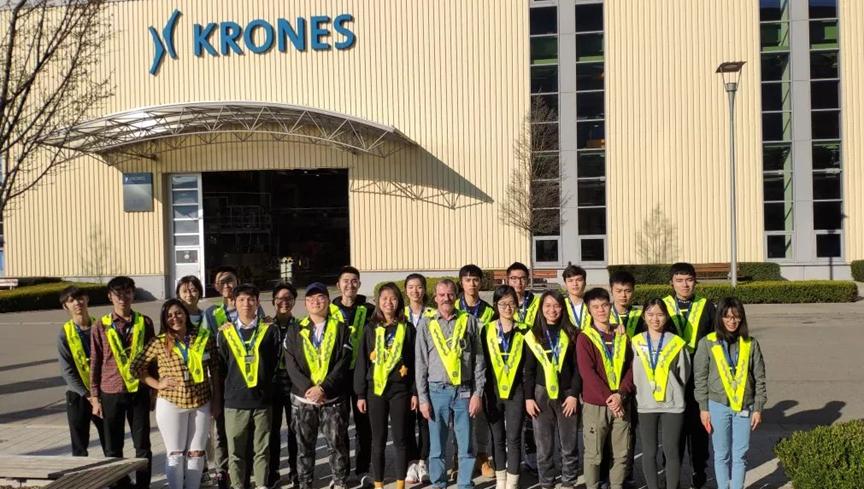 最后前往的是Krones集团,其总部位于雷根斯堡的新特劳普林,提供符合饮料、流质食品等瓶装用品的灌装包装全套生产线设备。在员工的细致讲解下,同学们对于灌装工艺从产品策划、设备开模、商标印制到最终成型的全过程有了初步的了解,也进一步接触了德国制造业细致的操作流程。