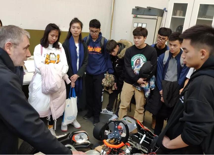 同时,同学们还进行了东巴伐利亚应用技术大学(雷根斯堡)与雷根斯堡大学校园和实验室参观。在电子科技实验室,Mr. Stelzl向同学们详细介绍了各式实验设备和原理,其中很多出自学校学生之手,最吸引人的无疑是自组装赛车,我校学生兴奋的咨询Mr. Stelzl赛车相关的各类问题,并且也在车上小小体验了一把。