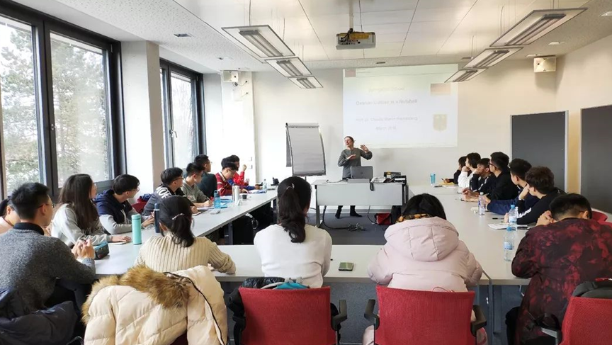 在跨文化交流课程中,Mrs. Worz Hackenberg 从思维模式、文化冲突、人际关系等方面分析了中德间的文化异同,通过各种真实的沟通案例,和同学们一同“相互学习”,课堂氛围一度十分活跃,课间同学们也积极与老师进行着交流。