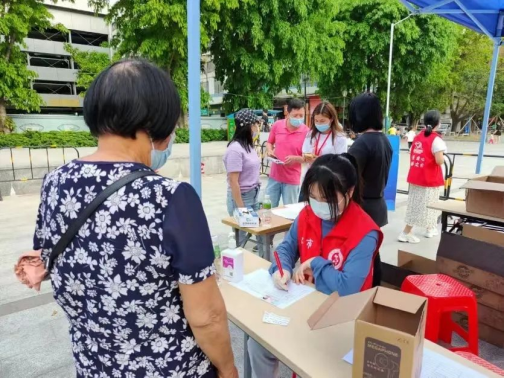 主要内容:引导居民扫描二维码进行健康申报、填写同意书、预约社康疫苗号;作为信息员扫描居民“粤核酸码”,维持现场秩序;指引居民登记信息,检测体温,出示小区“出入证”。