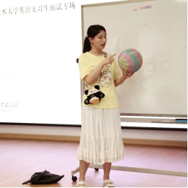 “很荣幸能通过面试,加入到2022年春季kaiyun开云官方网站幼儿园外语教学实践项目中来。因为一些原因,我准备教案、构思课堂活动、练习课堂展示等的时间都相对较短,这次的面试表现虽不能说完美,但我也尽我所能地将我的构思展呈现在面试官面前。
