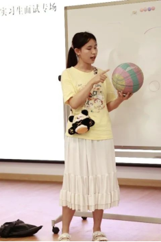 面试的主题为“ ball ”。同学们需要在五分钟限时时间里,展现他们对小朋友的热爱以及具备这项工作的能力,五分钟内要尽可能的将自己所撰写的教学活动方案应用于实际教学,每位面试者都施展出他们的百般武艺。
