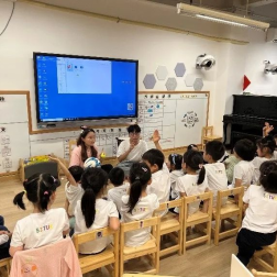 第一周的教学活动是以“ ball ”为主题,同学们使用歌舞、游戏以及口头加肢体展示的方式,帮助小朋友们识记球以及球的特点等单词和句子的英文表达。小朋友们对游戏等活动的热情超出了同学们的想象。要掌控场面,让每个小朋友既学到东西、又玩得尽兴,着实不容易。同学们在各班老师的协助下,实践自己教学目标的同时,尽量给与每位小朋友足够的关注和尊重,让幼儿园老师们感受到了来自深技大外国语学院同学们的用心和责任。