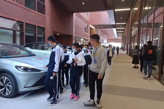 来到汽车文化节现场的不仅有深技大附属幼儿园的小朋友,还有来自坪山外国语文源学校的同学也受邀前来参观。