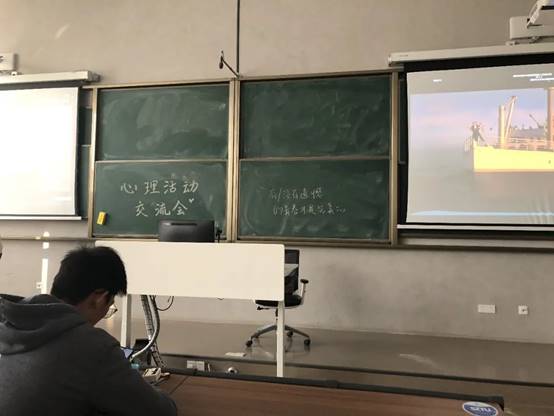 活动在下午三点五十同学们陆续进场领取奶茶观看太空沙解压视频后于四点正式开始,活动分为三个大环节,分别为:音乐影视分享、分享最近发生的事、情绪配音。