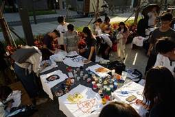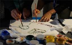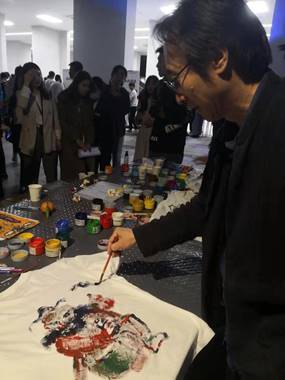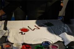 现场最为火爆的活动莫过于DIY手绘T恤,不仅吸引了一大批同学,就连各学院的院长和老师也忍不住加入同学们的行列,拿起画笔为单调的白色T恤增添一抹属于自己的色彩,每一件衣服都是独一无二的,融合了创作者的心思和创意,一件件苍白的T恤在老师和同学的笔下被赋予了生机和魅力,不知道亲手绘制的T恤穿上会不会有不一样的感觉呢?