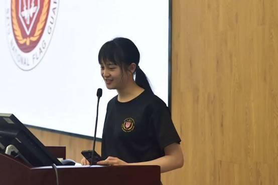 国护队指导老师向楚娴发言,鼓励队员再接再厉,只争朝夕,不负韶华,将国护的荣耀和爱国的精神继续传承下去。