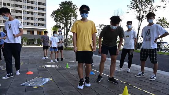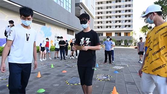 第三项活动—— “穿越雷区”是各队学生在蒙上眼睛的情况下通过本队“协助者”的言语指导完成穿越地雷区送达机密信件的任务。现实生活中遭遇挫折就如同身在雷区却被蒙上双眼一般令人焦虑迷茫,而身边队友帮助的声音则如同黑暗中的曙光,为生活带来了信心和希望。在活动中表现出极大耐心和强烈使命感的“协助者”正如疫情防控期间我们的医务工作者、人民子弟兵以及坚守在各行各业的服务人员,他们敢于担当、认真履职。