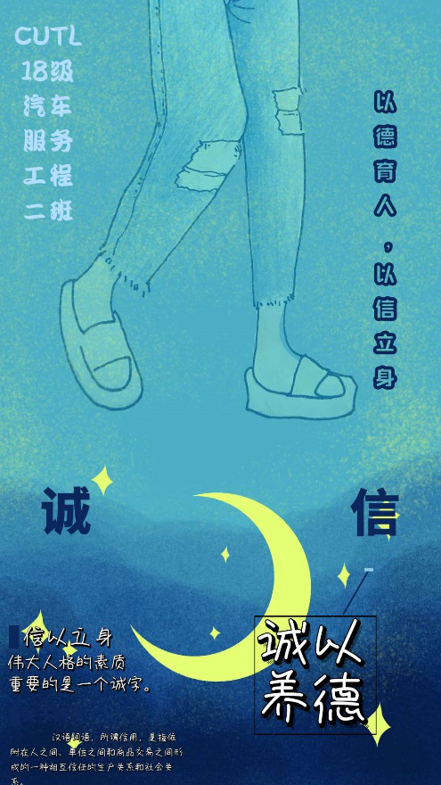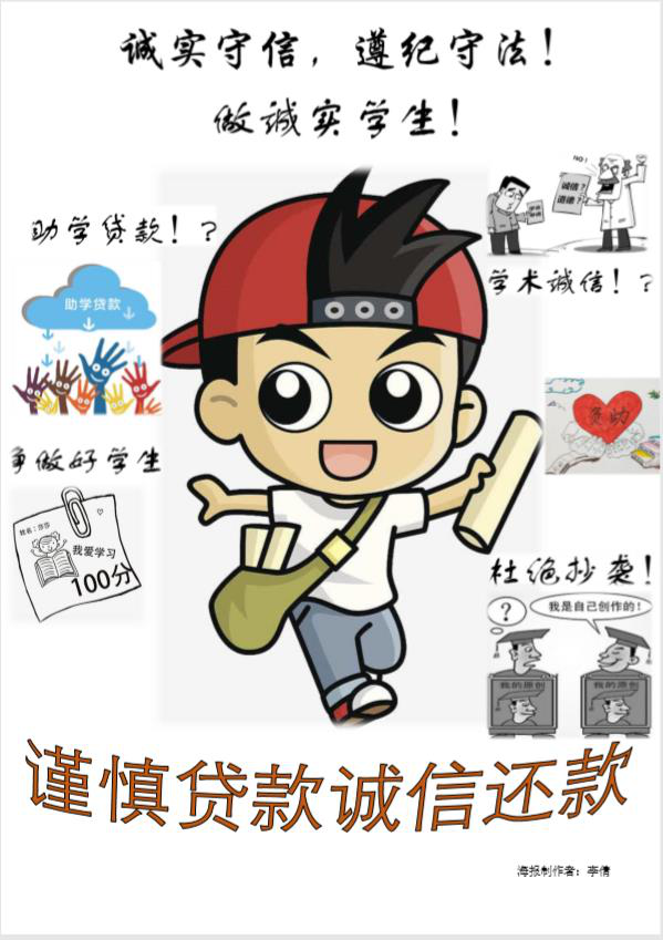 交物学院的同学们还设计了独具特色的主题海报,不仅强化了自身的诚信意识,还对诚信意识地宣传做出了良好的贡献,让我们欣赏一下他们的作品吧!