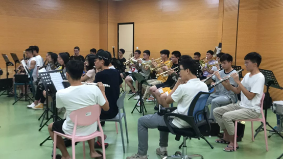 军乐团的成员大部分都是零基础的,他们从识谱开始,到现在能够吹奏一首乐曲,除了上课时候的学习以外,更离不开同学们课后的练习和磨合。军乐团的成员在课后会自行组织声部练习和固定时间的合奏练习,努力将军乐团建设成为一支成熟的学生乐团,以顺利完成将来的演奏活动。