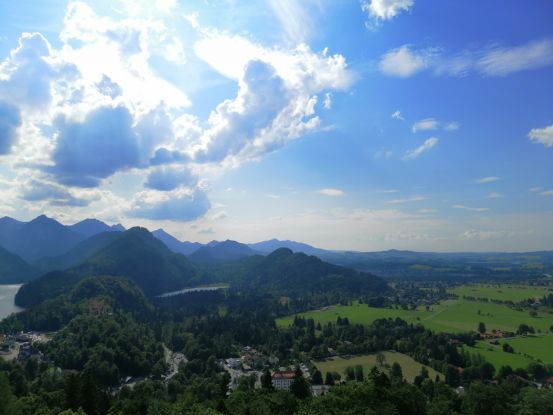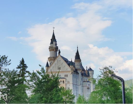 Schloss Neuschwanstein(新天鹅堡),这犹如人间仙境的地方藏着有关魔法、国王、骑士的古老传说。我们用最原始的方式——步行上山,感受着阳光的沐浴、呼吸着清新的空气,紧张的学习气氛渐渐悠闲。跟随着讲解员的脚步,时光倒退到19世纪末期,年轻国王的浪漫与坚贞悄悄溢满心头。宏伟的城堡、神秘的壁画、古典的家居,这座城堡揭开一百多年前的神秘面纱,悠远的历史记忆娓娓道来。自窗口远眺,无边的原始森林、柔嫩的山坡绿野、闲散漫步的成群牛羊、终年积雪的阿尔卑斯山和无尽宽阔的大湖,都让眼前的新天鹅堡变得极致梦幻。