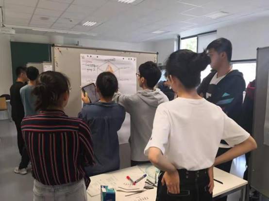 课程学习是我们此次暑期交换项目的核心。在第一周的课程学习中,文化交流和创新思维一直是课堂的重点。相比于中国的课堂教学,德国的课堂教学会更加强调师生互动的重要性,每当教授将讲授完一个知识点,便会给各个小组布置一个任务,并以此来了解同学们对知识的掌握和理解情况。