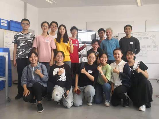 Prof. Spitznagel 和Prof. Rieger两位教授的实验课:数字工厂设计与工厂模拟练习和振奋人心的工厂练习的实操环节更是手把手传授了工件的制作组装方法,并一一强调了各个环节的注意事项。在教授的陪同帮助下,同学们完整体验了工厂“流水线”的全部流程,并成功制作出了正常工作的作品。虽然第一次合作制作就顺利完成,但我们制作的时间远远超出了规定的时间。