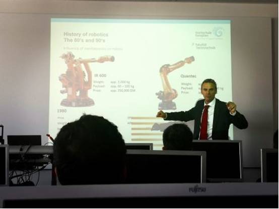 校园参观的第一站,我们来到了位于巴伐利亚南部的肯普滕应用技术大学,进入其“KUKA LAB”进行学习。