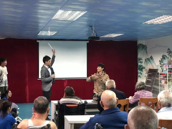 接下来的表演将这次演出带到了高潮,衣航、欧智鹏、梁礼麒带来的小品《吃拉面》既放松也不失韵味,十分吸引别人的注意力,也让爷爷奶奶打起了精神。