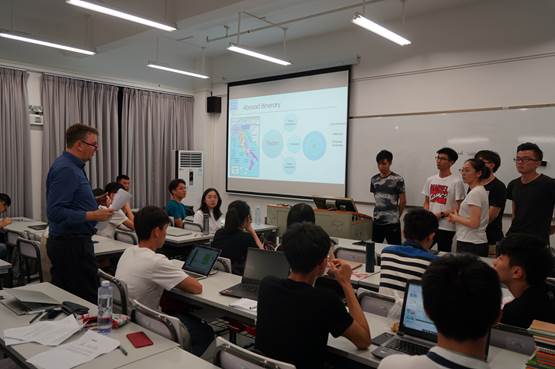 最让人印象深刻的莫过于演讲环节了,几乎每次课都要演讲的我们经过为期两周的训练已经能够摆脱演讲稿的束缚,有条理有节奏有团队配合的表达一个主题,这对于我们将来寻求外部合作时所需的说服型演讲有一个巨大的帮助。在此,非常感谢来自瑞士的Pieter教授为我们带来的领导力与项目交流的国际课程,期待您下次的到来。