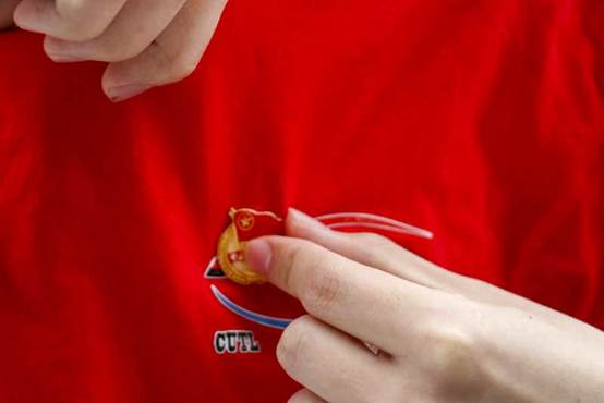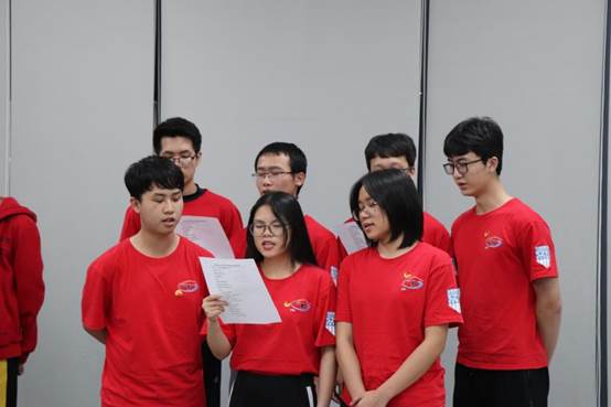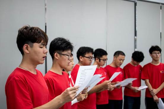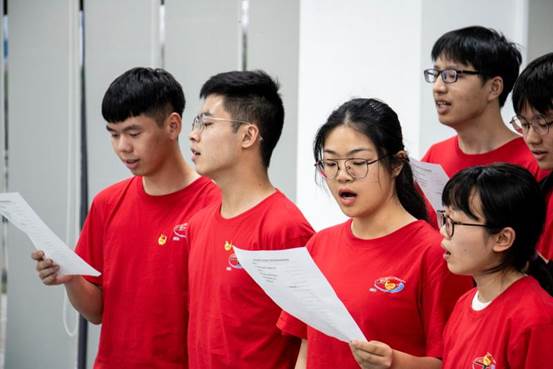 (齐唱中国共青团团歌《光荣啊!中国共青团》)