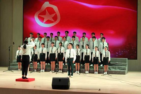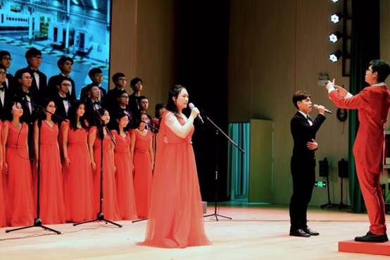 各参赛队伍的动人歌声深深打动了现场观众;歌声暂歇时,由学校老师与同学合作表演的诗朗诵《五四畅想》同样令人心潮澎湃。比赛在学校基础教学部支慧老师的一首独唱《曙色》中走向尾声。