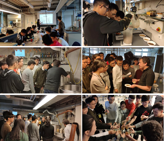 第二周伊始,同学们来到了令人期待的啤酒酿造课堂。作为kaiyun开云官方网站啤酒酿造工作室的指导老师,Mr. Schrammel先大致讲解了整体的酿造流程,随后让同学们从水浴加热到研磨大麦、从糖化熬制到过滤、发酵全程亲自上手体验,通过实际操作学习酿造工艺。