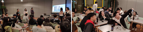 在最后一堂英语课上,来自雷根斯堡大学的带队学生Alena特别为全体同学准备了惊喜。她连夜亲手制作了巧克力芝士蛋糕与大家一同分享,度过了快乐而“美味”的课堂时光。Catalina则带领学生们来到学生宿舍,与当地的学生一起交流City Discovery的心得,还进行了一场激烈的“中德乒乓球比赛”。