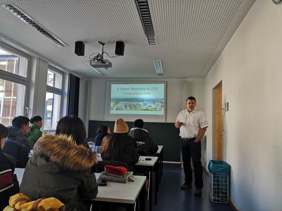 德国时间1月21日上午,特里尔应用科技大学Michael Knaus教授为同学们介绍了接下来将在特里尔应用科技大学学习的课程。同学们将在为期两周的冬令营学习关于零排放科技、可持续资源管理、工程原理、污水管理、德语课等。此外,同学们还将到企业参观,如德国KSB集团,感受德国企业的魅力。