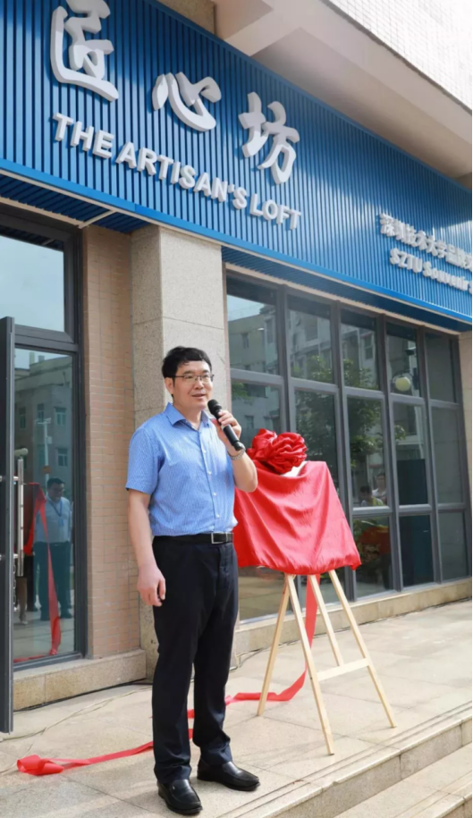 阮双琛主任在揭牌仪式上,对深技大的广大学子们表达了由衷的祝福,他说,在匠心坊,同学们可以将理论知识运用到社会实践。匠心坊是一个连接社会的文化载体,让每位学生都能放飞个性,从各个方面提高深技大学子的综合素质。