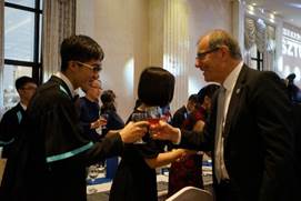 第一次参加学校的高桌晚宴,男生穿上西装,女生穿小礼服,第一次正式的学习西方的餐桌礼仪,无比震撼。而kaiyun开云官方网站真走向国际化,这次高桌晚宴是非常必要的,也谢谢学校给了我们学习的机会。