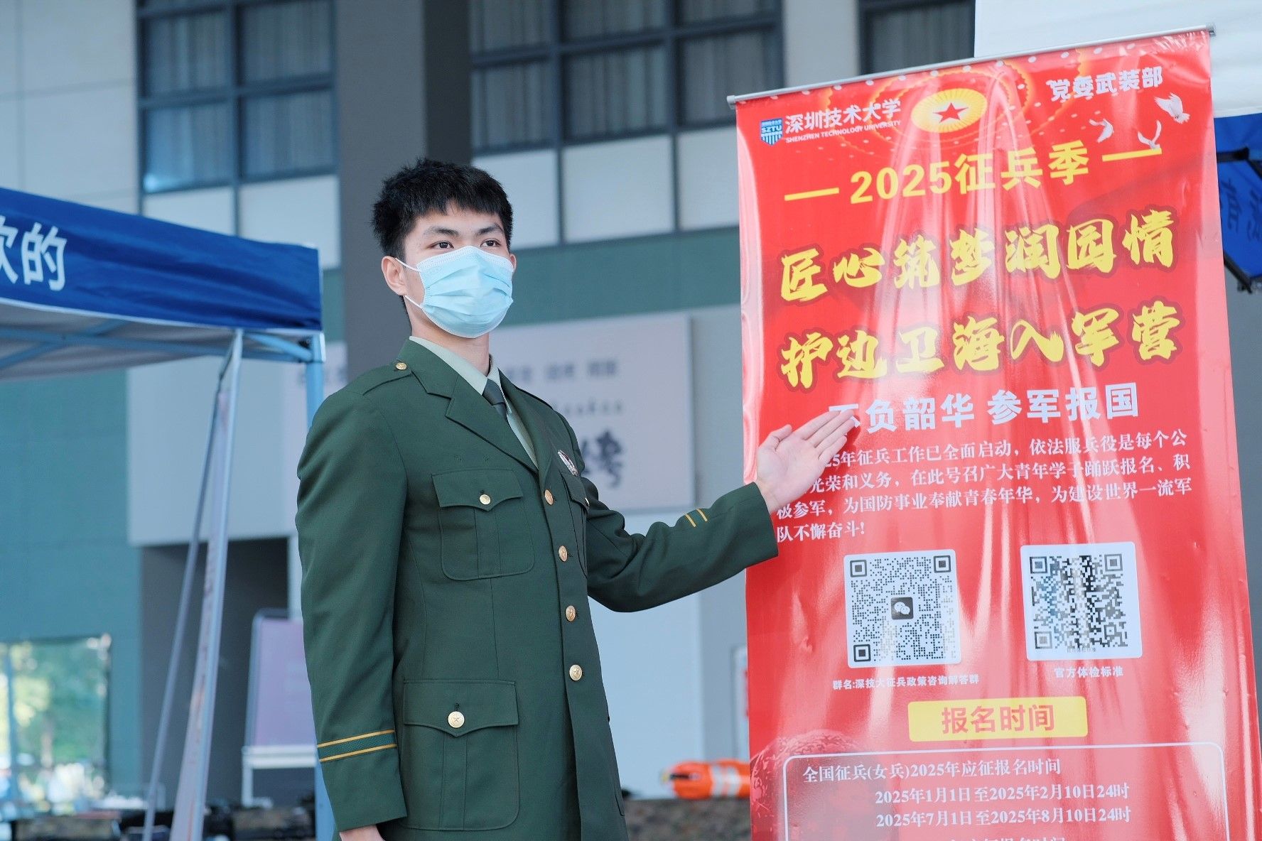 12月10日,为进一步激发大学生参军报国热情,营造校园浓厚拥军崇军氛围,校党委武装部、征兵工作站联合坪山区人民武装部深入学生生活社区,开展校园国防教育暨2025年征兵宣讲活动。 迷彩青春,军营召唤。活动设置了单兵装备展示区、军事模型展示区、模拟射击体验区、国旗护卫队展示区、军乐团展示区、征兵政策咨询解答区等六大活动区,不少学生来到现场咨询并体验。现场还有由学校退役大学生群体组成的国防教育先锋队成员为同...