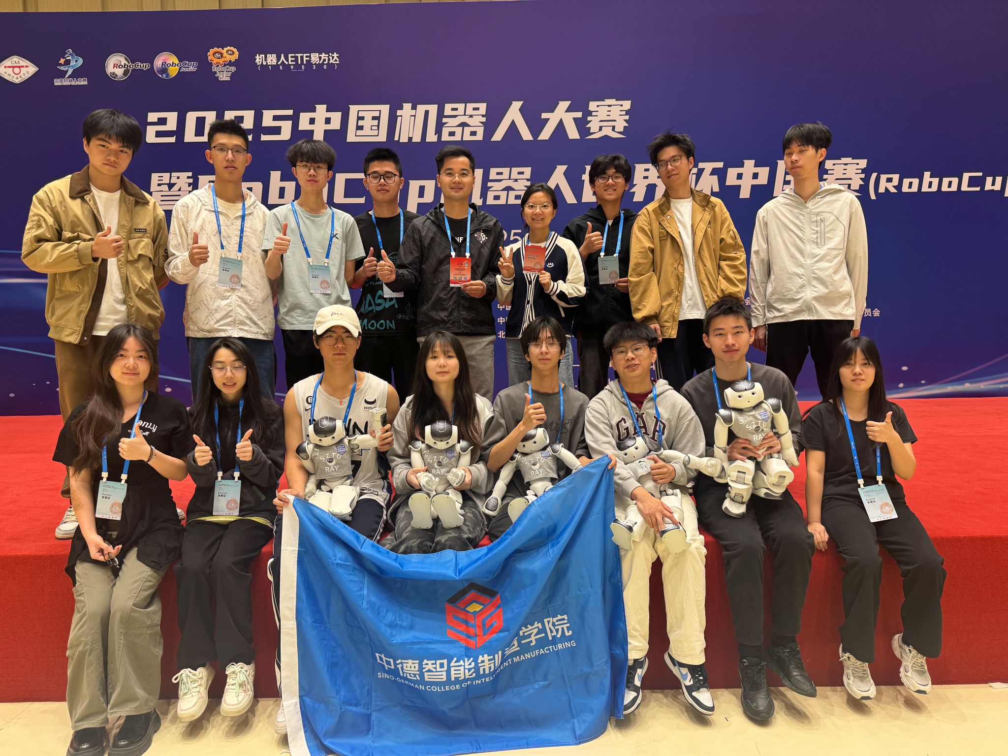 近日,在中国机器人大赛暨RoboCup机器人世界杯中国赛上,kaiyun开云官方网站中德智能制造学院代表队斩获多项大奖,成为赛事焦点。这支年轻队伍打破传统强队垄断格局,获得足球机器人-标准平台组全国冠军,同时将仿真3D组全国一等奖、RoboCup@Home家庭服务机器人组全国三等奖收入囊中,全面展现学校在人工智能与机器人领域的创新实力。标准平台组冠军黄向阳、饶志军、曾昭鹏、张晟熙、吴妙真、谭嘉欣、王潇、吴浩晖、李钊荣仿真3D组一...