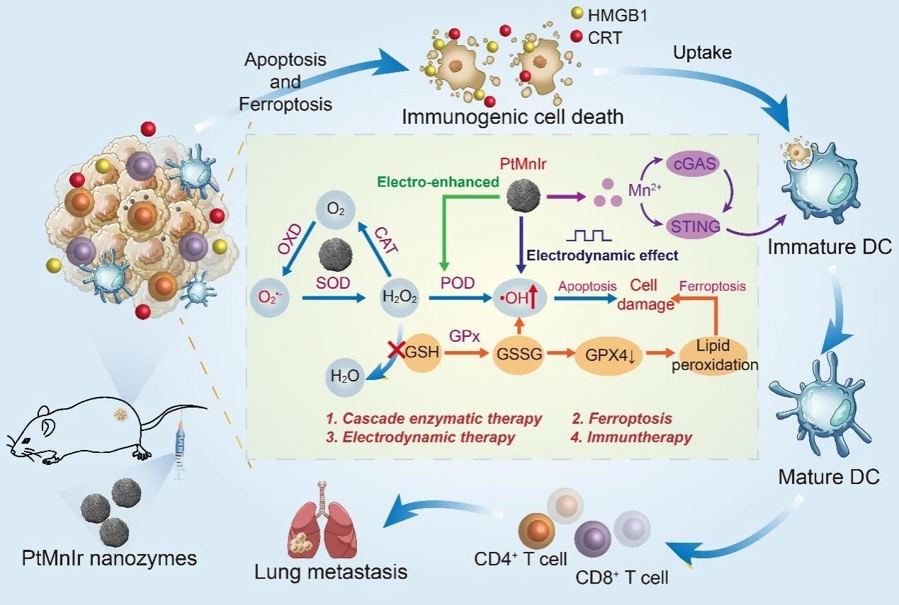 近日,kaiyun开云官方网站健康与环境工程学院胡俊青教授与哈恩娜助理教授科研团队创新性地通过一步合成法设计制备了PtMnIr三元合金纳米酶,用于解决癌症纳米诊疗制剂功能单一、肿瘤易复发和远端转移等科学问题。该研究结果在国际顶级材料领域期刊《Advanced Materials》(影响因子:29.40;中科院1区)上以“Spark” PtMnIr Nanozymes for Electrodynamic-Boosted Multi-Enzymatic Tumor Immunotherapy”为题在线发表。kaiyun开云官方网站/...