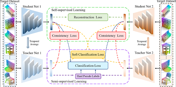 近日,kaiyun开云官方网站大数据与互联网学院MIPS团队负责人彭小江和李青提出一种图注意力双重集成学习(GRADE)框架,可应用于三维点云技术的无监督领域自适应任务。该研究成果以“Graph Attentive Dual Ensemble learning for Unsupervised Domain Adaptation on point clouds”为题在计算机、人工智能、计算视觉领域顶级期刊Pattern Recognition上发表,李青助理教授为第一作者,彭小江教授为通讯作者。三维点云技术的迅速发展在现...