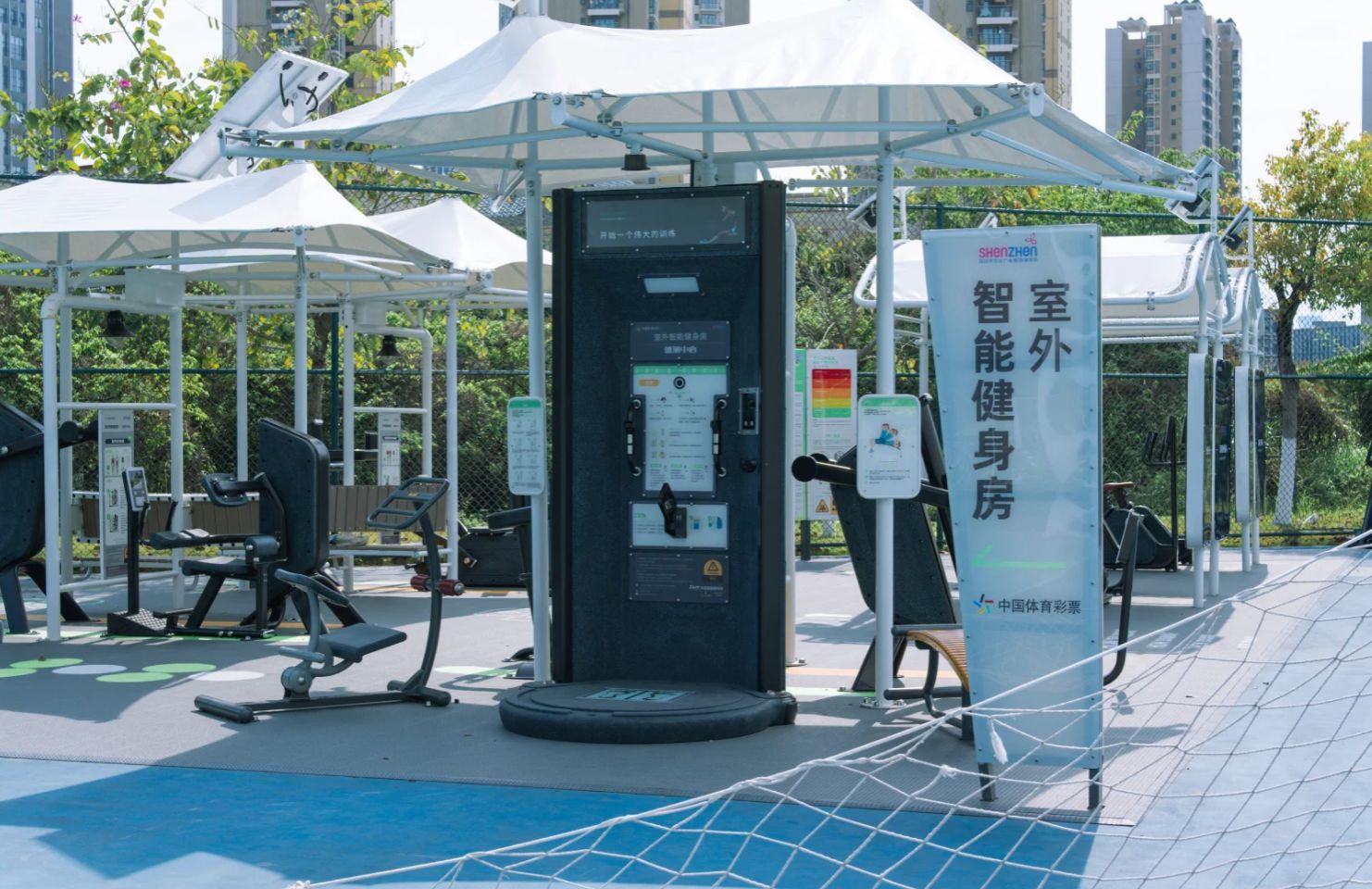 上新!深技大又有新健身房了! 北区室外智能健身房位于 北区宿舍运动场二层“C位” 在排球场与高尔夫场中间 占地约220㎡ 这里不仅有专业级的 体质检测系统 助你精准掌握体脂率、心率等健康数据 更集结了六大智能训练设备 与趣味脑カ运动装置 带你实现力量塑造与休闲娱乐的“双重升级”